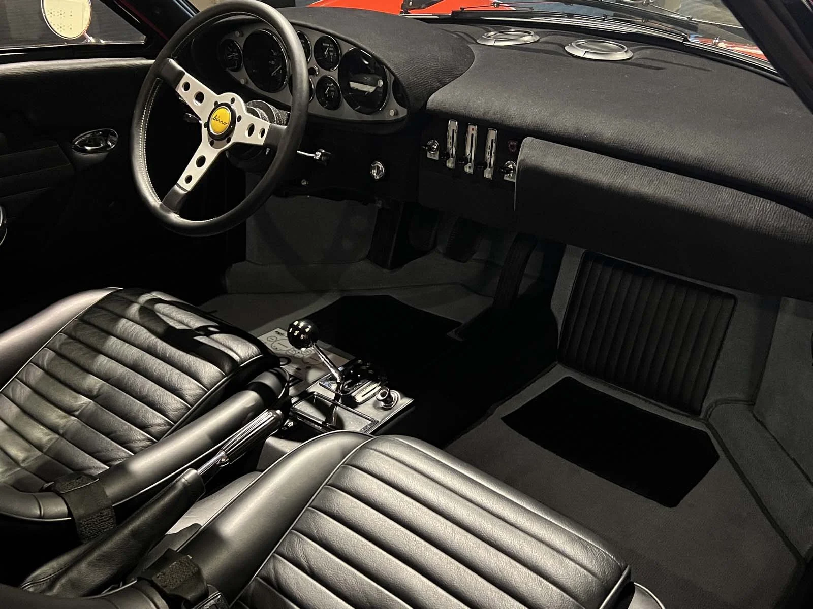efficient with a top speed of 146 MPH from less than 200 naturally aspirated horses. And the interior is luxurious and comfortable for all day travel; yet the seats will hold the driver snugly during track day driving. Like Shakespeare’s rose, Dino is a Ferrari by any name.