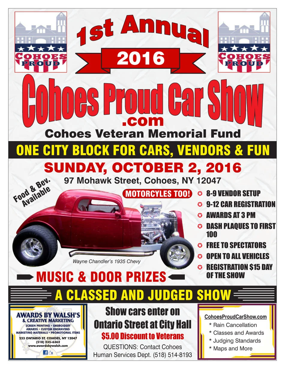 Back to All Events Cohoes Proud Car Show Sunday, October 2, 2016 10:00 AM 3:00 PM Google Calendar ICS