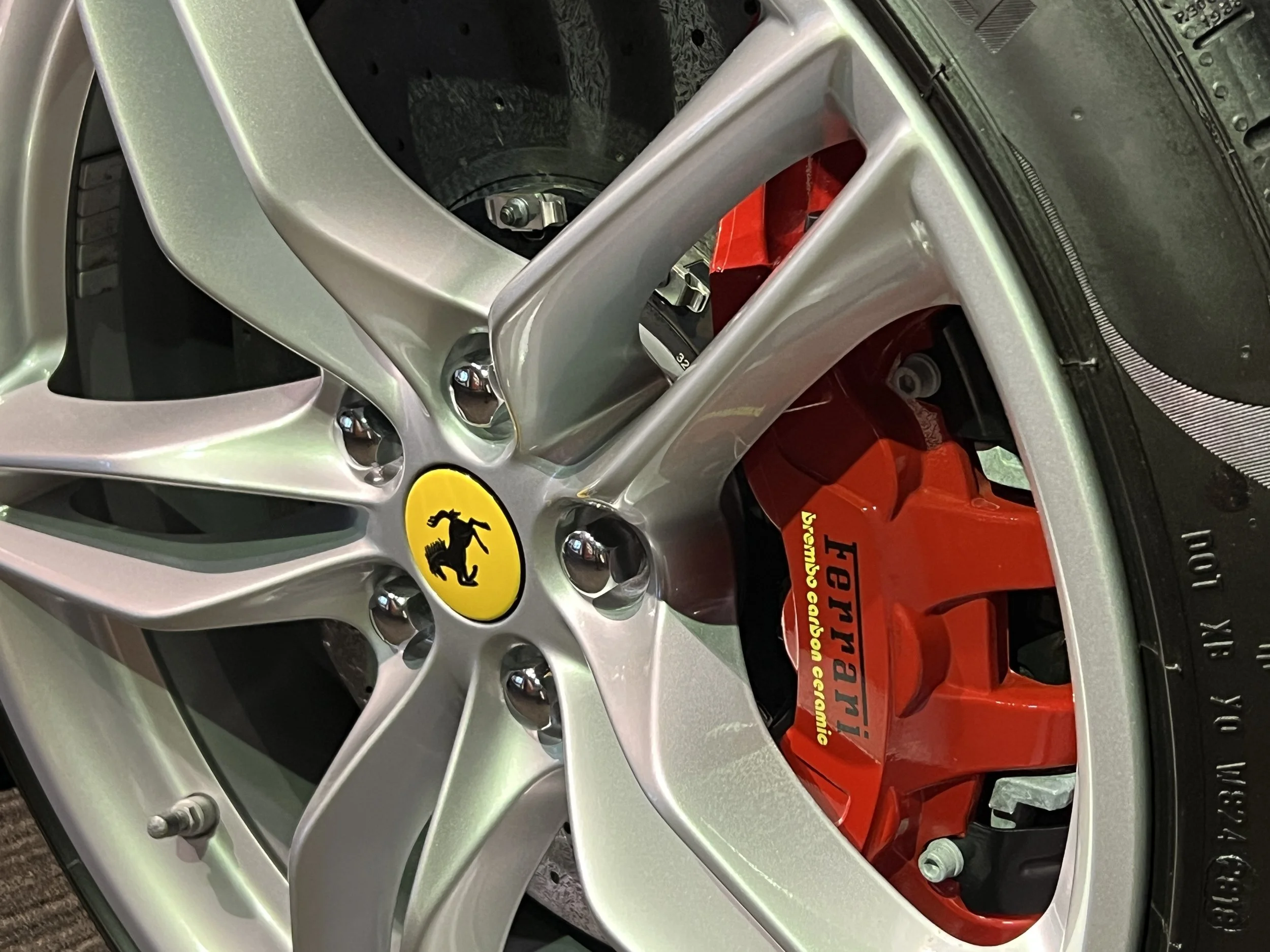 The 812 stands as an example of the advances Ferrari design innovation. By moving the engine over the front axle, it is then possible to achieve the benefits and balance found in the weight distribution of a mid-engine machine; with 47% front and 53% rear. The 6.5 liter 65 degree V-12 naturally aspirated engine produces 789 hp at 8,500 rpm. At introduction it was the most potent engine of its type ever made. All that power reaches the wheels via a dual-clutch automatic gearbox made to Ferrari specifications by Getrag. Braking is made seamless by carbon-ceramic Brembo Extreme Design disc brakes; 15.7 inches in the front and 14.2 at the back.